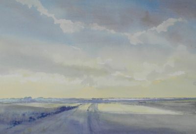 I’ve got about ten new paintings on show, plus some old favourites and lots of sketchbooks etc. to look at. I sold loads of cards and prints over the weekend, so I’m busy topping those up too! One of the paintings that seems to be particularly popular is this view over the Wash, from Chalk Pit Road above the village of Ingoldisthorpe. A magical viewpoint really – I could sit there for hours just watching the changing light.