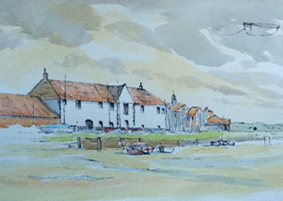 Burnham Overy Staithe. Pen and wash using Rowney FW acrylic inks. 40 x 30 cms.